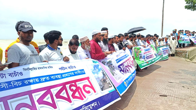 মানববন্ধনে বক্তারা বলেন, ‘কুয়াকাটা দেশের দ্বিতীয় বৃহত্তম সমুদ্র সৈকত এবং সম্ভাবনাময় আন্তর্জাতিক পর্যটন কেন্দ্র হলেও অব্যবস্থাপনা, অবকাঠামোগত দুর্বলতা ও পরিকল্পনার অভাবে পর্যটন শিল্প মারাত্মকভাবে হুমকির মুখে। সৈকত ভাঙন রোধে কার্যকর পদক্ষেপ না নেয়ায় সমুদ্র সৈকতের সৌন্দর্য দিন দিন হারিয়ে যাচ্ছে।’